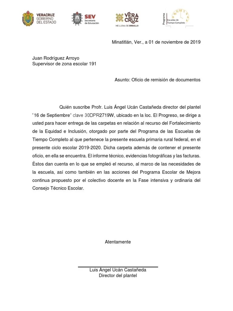 Al final, escribe «atentamente», el nombre del autor, su cargo y su firma. Con el presente se les comunica que pueden pasar a recoger el vehículo descrito como nissan platina color rojo placas rpe2145, . El ejemplo de oficio se realizan con copias o duplicados, debido a que como son oficiales o de importante valor, deben quedar archivados o como .